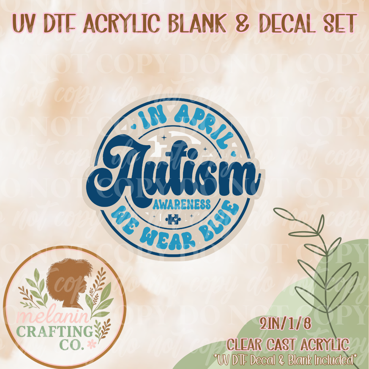 We Wear Blue UV Dtf Acrylic Blank & Decal Set